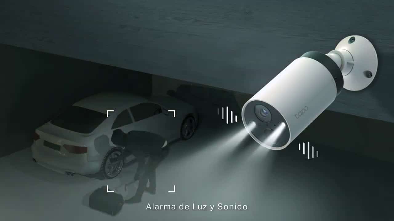 Caméra avec flash bleu/rouge et message de dissuasion